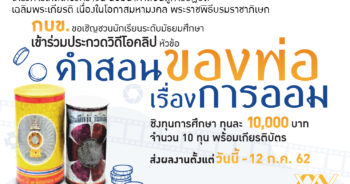 กบข. ประกวดทำคลิป “คำสอนของพ่อเรื่องการออม” ชิงทุน 1 หมื่นบ. 02/07/2019 11:0102/07/2019 12:26tigerBreaking News, ประชาสัมพันธ์กบข.ประกวดคลิปชิงทุน 1 หมื่นบ. HoonSmart.com>>กบข. ประกวดคลิป “คำสอนของพ่อเรื่อง […]