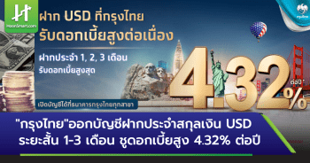 HoonSmart.com>>”กรุงไทย” (KTB) เพิ่มทางเลือกการออม ผ่านบัญชีฝากประจำสกุลเงินดอลลาร์สหรัฐ ระยะ 1-3 เดือน ดอกเบี้ยสูง 4.32% ต่อปี