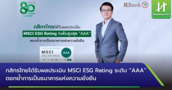 HoonSmart.com> “ธนาคารกสิกรไทย” (KBANK) ได้รับผลประเมิน MSCI ESG Rating ระดับสูงสุด “AAA” ตอกย้ำการเป็นธนาคารแห่งความยั่งยืน