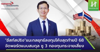 HoonSmart.com>> บลจ.อีสท์สปริง เปิดกลยุทธ์ลงทุนช่วงโค้งสุดท้ายปี 68 แนะจัดพอร์ตแบบสมดุล กระจายความเสี่ยง แบ่งสัดส่วนลงทุนในสินทรัพย์สร้างโอกาสเติบโตสูง ควบคู่สินทรัพย์ป้องกันความเสี่ยง พร้อมชู 3 กองทุนเด่น ES-GTECH , ES-HEALTHCARE, ES-ASIA