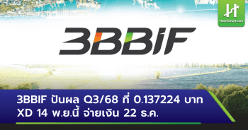 3BBIF จ่ายปันผลครั้งที่ 36 อัตรา 0.137224 บาท ดีเดย์ 22 ธ.ค.นี้