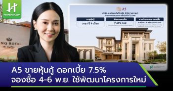 A5 ขายหุ้นกู้ ดอกเบี้ย 7.5% จองซื้อ 4-6 พ.ย. ใช้พัฒนาโครงการใหม่