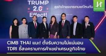 HoonSmart.com>> ธนาคาร ซีไอเอ็มบี ไทย จัดงานสัมมนาประจำปี ฉายภาพเศรษฐกิจโลก เศรษฐกิจไทยให้ลูกค้ารายใหญ่เตรียมแผนธุรกิจ ปรับตัวรับความไม่แน่นอนต่อการค้าโลก ชี้เศรษฐกิจไทยปี 2568 เติบโตชะลอรอแรงส่งจากดอกเบี้ยท่องเที่ยวและนโยบายรัฐ