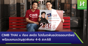 HoonSmart.com>>CIMB THAI x ก้อง สหรัถ โปรโมตพันธบัตรออมทรัพย์ รุ่น 10 ปี อัตราดอกเบี้ยเฉลี่ย 2.49% ต่อปี ส่งเสริมการออมคนไท พร้อมแคมเปญสุดพิเศษ 4-6 ส.ค.68 จองซื้อ ผ่านแอป CIMB THAI หรือ ธนาคาร ซีไอเอ็มบี ไทย ทุกสาขา