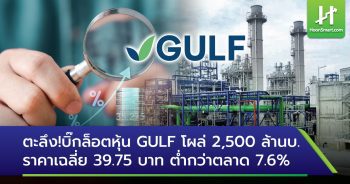 HoonSmart.com>>การซื้อขายหุ้นวันที่ 16 มิ.ย. 2568 เวลาประมาณ 12.05 น.มีการซื้อขายหุ้น GULF บฺิ๊กล็อตจำนวน 62,972,615 หุ้น มูลค่ารวม 2,503.16 ล้านบาท ราคาเฉลี่ยหุ้นละ 39.75 บาท ต่ำกว่าราคาตลาดหุ้นละ 3.25 บาท คิดเป็นประมาณ 7.6% เทียบกับราคาปิดที่ 43 บาท