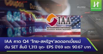 IAA คาด Q4 “ไทย-สหรัฐฯ”ลดดอกเบี้ยแน่ ดัน SET สิ้นปี 1,313 จุด- EPS ปี’69 แตะ 90.67 บาท