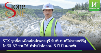 HoonSmart.com>>”สโตนวัน”(STX) ขยายอาณาจักรเหมืองหิน เดินหน้าซื้อเหมืองใหม่ที่ จ.เพชรบุรี เพิ่มปริมาณสำรองหินอุตสาหกรรม รองรับดีมานด์ก่อสร้างจากเมกะโปรเจกต์ภาครัฐ-โครงการ EEC ขยายตัวในอัตราเร่ง ด้านปี 67 ผลงานทุบสถิติรายได้-กำไรในรอบ 5 ปี โดยกำไรสุทธิอยู่ที่เกือบ 52 ล้านบาท โตแรง 36% รายได้รวมเกือบ 457 ล้านบาท เพิ่มขึ้น 23% แจกปันผล 0.10 บาท XD 14 มี.ค.68