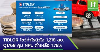TIDLOR โชว์กำไรนิวไฮ 1,218 ลบ. Q1/68 คุม NPL ต่ำ 1.78%