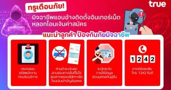 TRUE เตือนภัย! มิจฉาชีพแอบอ้างติดตั้งอินเทอร์เน็ต หลอกโอนเงินค่าสมัคร