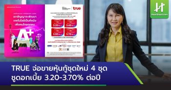 HoonSmart.com>> “ทรู คอร์ปอเรชั่น” (TRUE) เตรียมเปิดขายหุ้นกู้ชุดใหม่ให้แก่ผู้ลงทุนทั่วไป จำนวน 4 ชุด อายุระหว่าง 4 ปีถึง 10 ปี อัตราดอกเบี้ยคงที่ระหว่าง 3.20–3.85% ต่อปี พร้อมจ่ายดอกเบี้ยทุกๆ 6 เดือน ชูเครดิต “A+” ตอบโจทย์นักลงทุนมองหาโอกาสสร้างรายได้ที่มั่นคง คาดเปิดจอง 31 ก.ค.นี้ , 1 และ 4 ส.ค. ผ่าน 7 สถาบันการเงินชั้นนำ