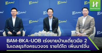 HoonSmart.com>>WIN-WIN-WIN บริษัทบริหารสินทรัพย์ กรุงเทพพาณิชย์ (BAM) เปิดโมเดลธุรกิจครบวงจร นำทรัพย์บ้านเดี่ยวมือสองราคา 5 ล้านบาทขึ้นไป ให้”บางกอก แอสเซท”(BKA) ยืมไปตกแต่ง 8-10 เดือน ขายถูกกว่าบ้านใหม่ 30% มีธนาคารยูโอบี หนุนเงินกู้ดอกเบี้ยต่ำ 2.99% ต่อปี นาน 3 ปีให้ลูกค้า เป้า 100 ล้านบาท ช่วย BAM เร่งผลเรียกเก็บหนี้เร็วขึ้น จาก 8 ปี เหลือ 4 ปี เปิดกว้างพันธมิตรบริหารทรัพย์ทั้งหมด 24,000 ชิ้น มูลค่า 72,000 ล้านบาท ปลายปีนี้เพิ่มทรัพย์ก้อนใหญ่