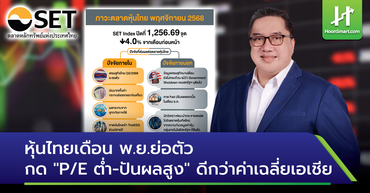 หุ้นไทยเดือน พ.ย. ย่อตัว กด “P/E ต่ำ-ปันผลสูง” ดีกว่าค่าเฉลี่ยเอเชีย
