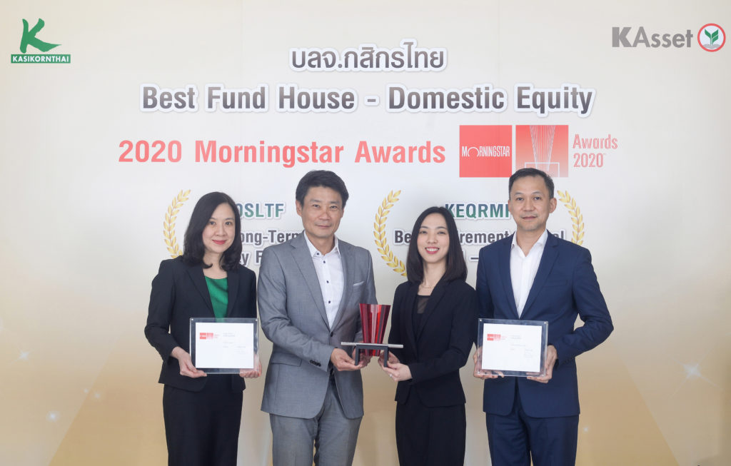 บริษัทหลักทรัพย์จัดการกองทุน (บลจ.) กสิกรไทย จำกัด คว้ารางวัลยอดเยี่ยมจาก Morningstar Thailand Fund Awards 2020 ได้สูงสุดถึง 3 รางวัล โดยในปีนี้ บลจ.กสิกรไทย สามารถคว้ารางวัลบริษัทจัดการกองทุนยอดเยี่ยม ประเภทการลงทุนหุ้นไทย (Best Fund House – Domestic Equity) มาครองได้สำเร็จ ซึ่งนับเป็นการการันตีคุณภาพถึงการบริหารจัดการกองทุนหุ้นไทยได้อย่างมีประสิทธิภาพ